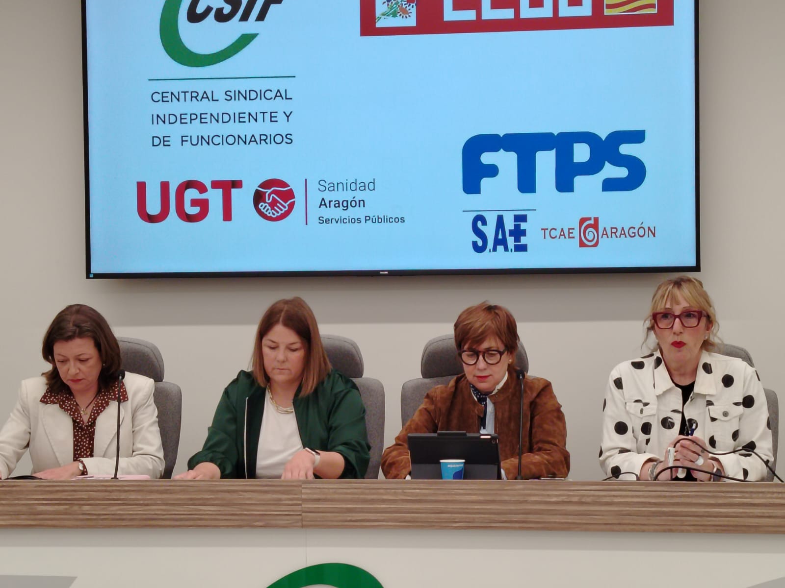 FTPS, CSIF, UGT y CCOO han unido sus fuerzas para luchar por una negociación equitativa para todos los profesionales de la sanidad aragonesa ante la negociación paralela a la Mesa Sectorial que están llevando a cabo los sindicatos médicos con el gobierno en funciones de Jorge Azcón.