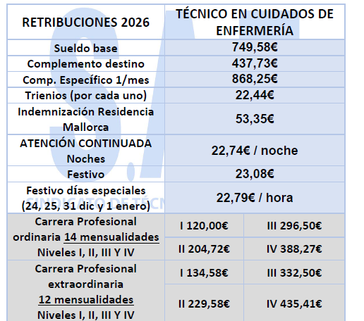 Subida 2,5% del (2025) + 1,5% del (2026) RETRIBUCIONES 2026 TÉCNICO EN CUIDADOS DE ENFERMERÍA