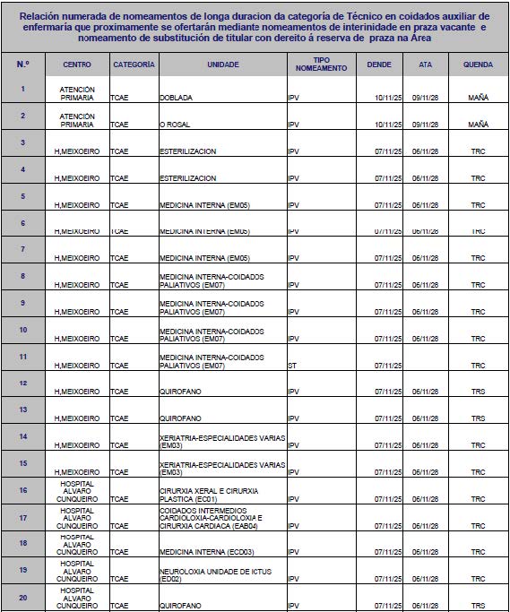 Publicada en el BOPA de hoy, Resolución de 26 de septiembre de 2025, de la Dirección Gerencia del SESPA, por la que se hace público el listado definitivo de puntuaciones y adjudicaciones de destinos funcionales en el proceso de movilidad voluntaria abierto y periódico, para el acceso a plazas estatutarias de la Categoría de TCE. Técnico en Cuidados de Enfermería.