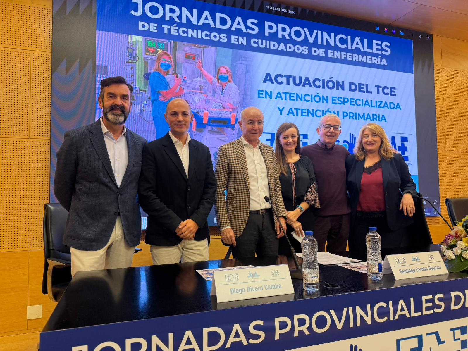 Esta mañana se han inaugurado las XIV Jornadas Provinciales para Técnicos en Cuidados de Enfermería (TCE) en Ourense con la presencia de Santiago Camba Bouzas, gerente EOXI de Ourense, Verónica Civeira Pérez, subdirectora de procesos de enfermería, Diego Rivera Camba, subdirector de procesos de enfermería, Eduardo González Gil, subdirector de Recursos Humanos del Área Sanitaria de Ourense, Verín y O Barco de Valdeorras, y Jorge Santurio Sánchez.
